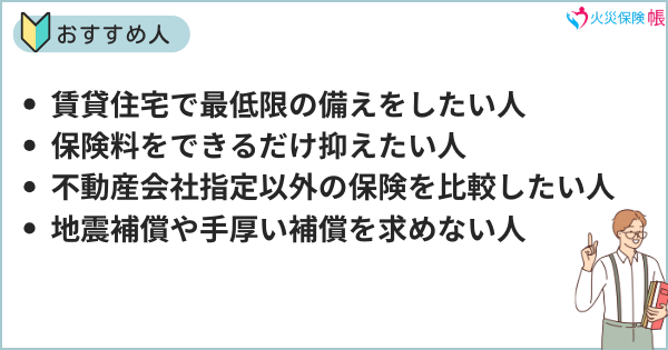 初めての一人暮らしや、保険を細かく比較するのが苦手な人にも向いています。補償をわかりやすく一式で持ちたい人には、検討しやすい選択肢です。