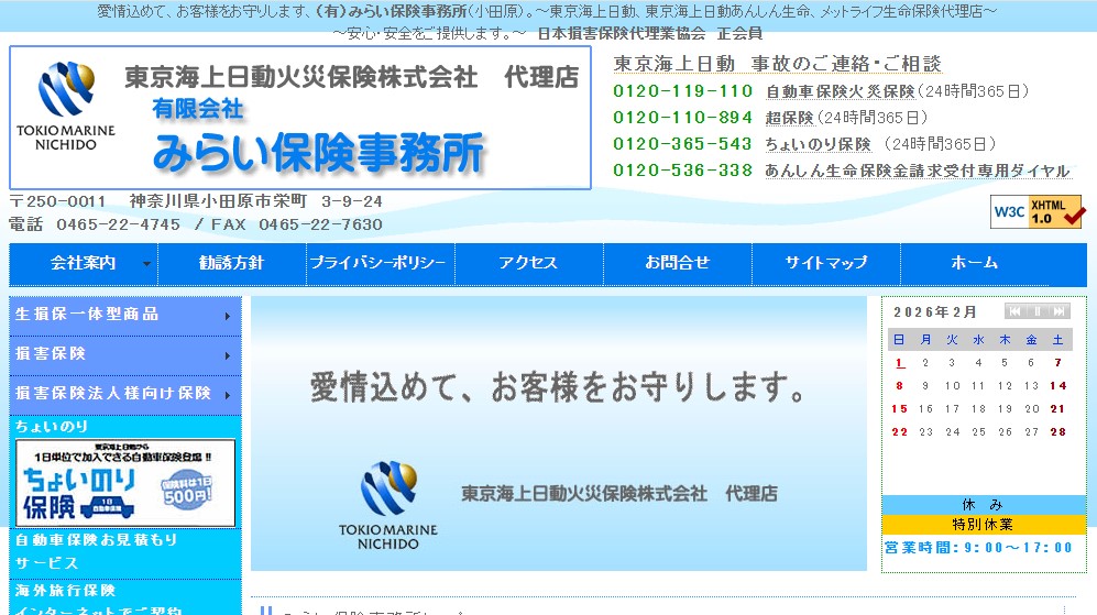 取扱種目:自動車保険・火災保険・傷害保険・生命保険など総合的に取扱い。
